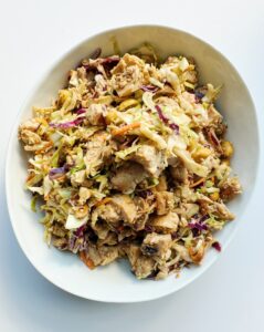 - Spray a pan with an oil spray & stir fry chicken until cooked through.