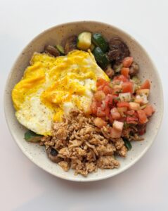 - Stir fry ground turkey, zucchini, & mushrooms on low-medium heat until ground turkey has cooked through. Remove from the pan, mix with BBQ sauce.