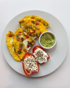 - Add cottage cheese to the rest of the pepper, & top with everything bagel seasoning.