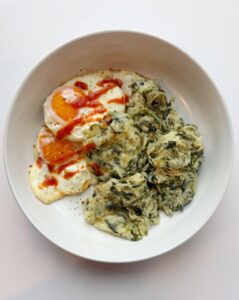 - Add zoodles to a pan, stir fry on low-medium heat until cooked through (drain away any excess liquid).