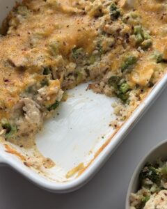 Swap chicken for tofu, pressing it first to remove any excess moisture. Then, cut the tofu into bite-sized cubes. Before adding the tofu to the casserole, stir-fry or bake it until it has a slightly crisp outer layer. You may want to season the tofu with garlic, salt, and pepper.