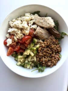 - Combine all foods in a bowl, top with balsamic & seasonings.